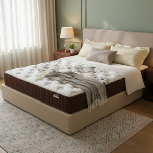 Encapsulado: Reforço exterior de todo o bloco com HR de alta densidade, garantindo o máximo conforto, resistência e durabilidade do colchão.